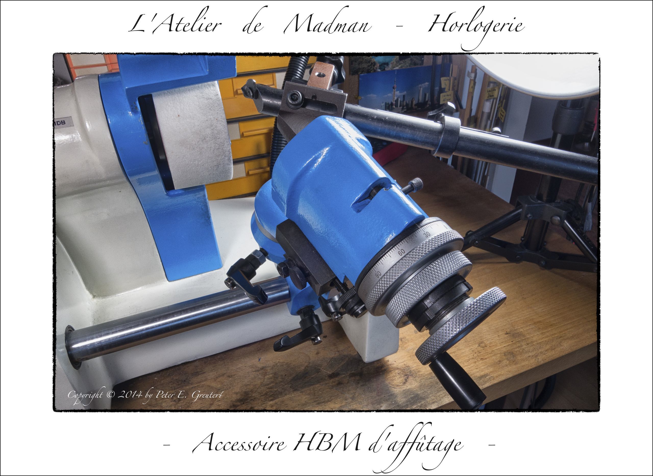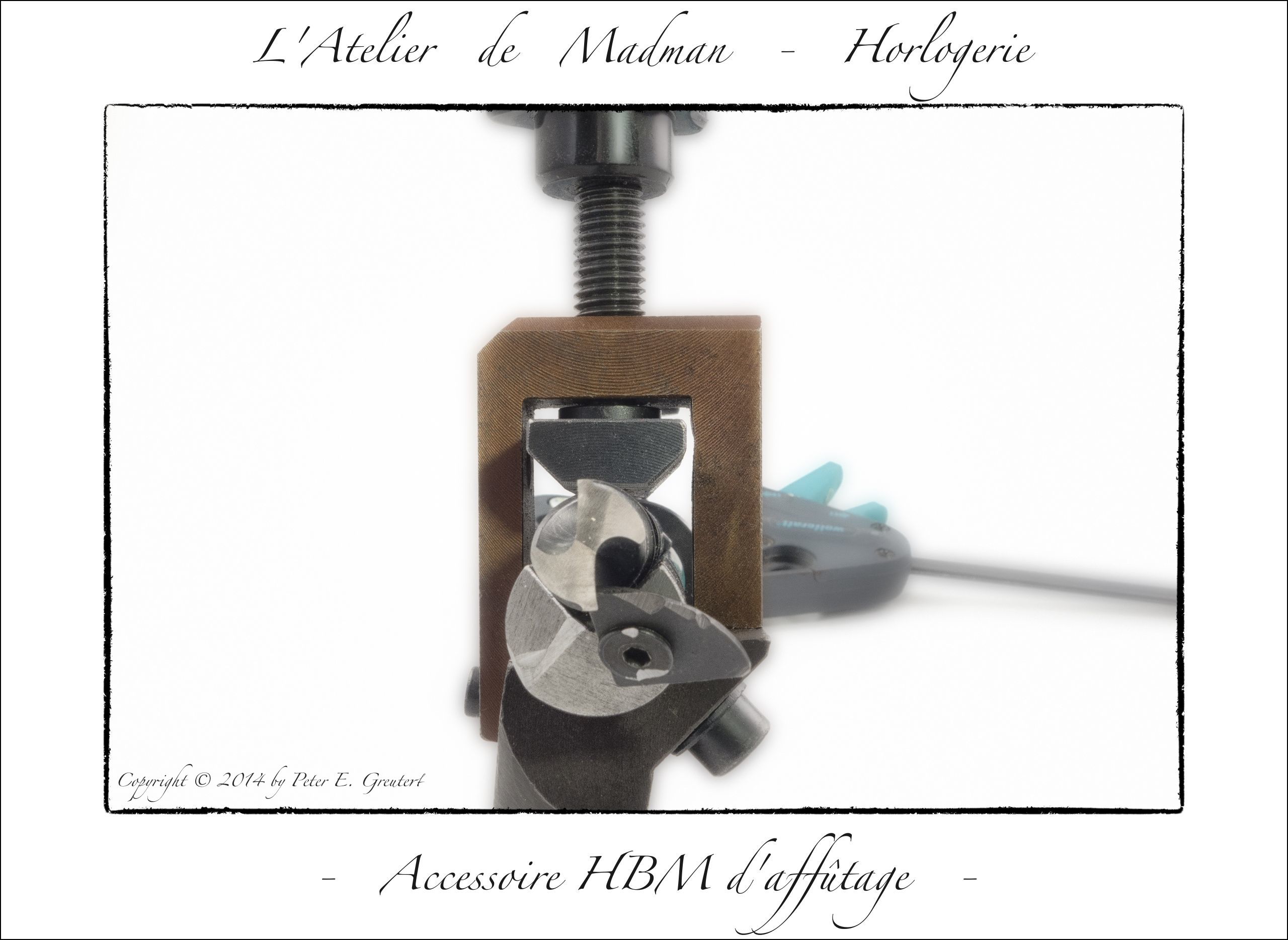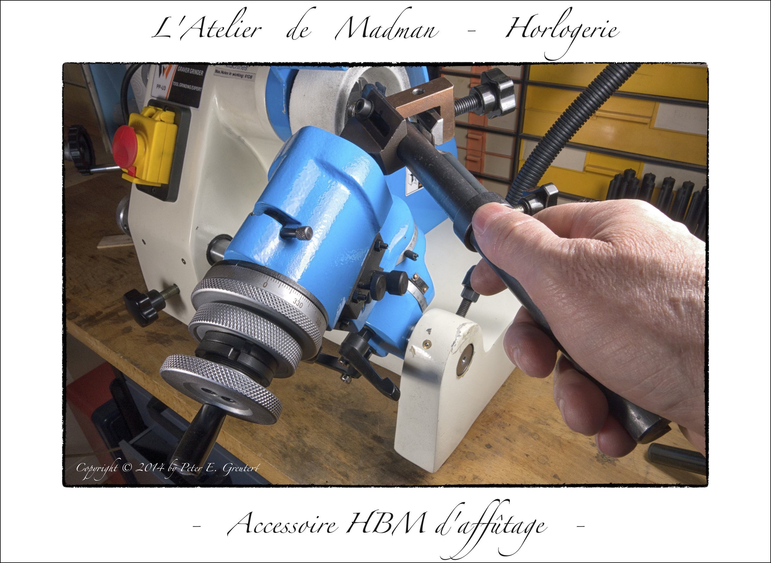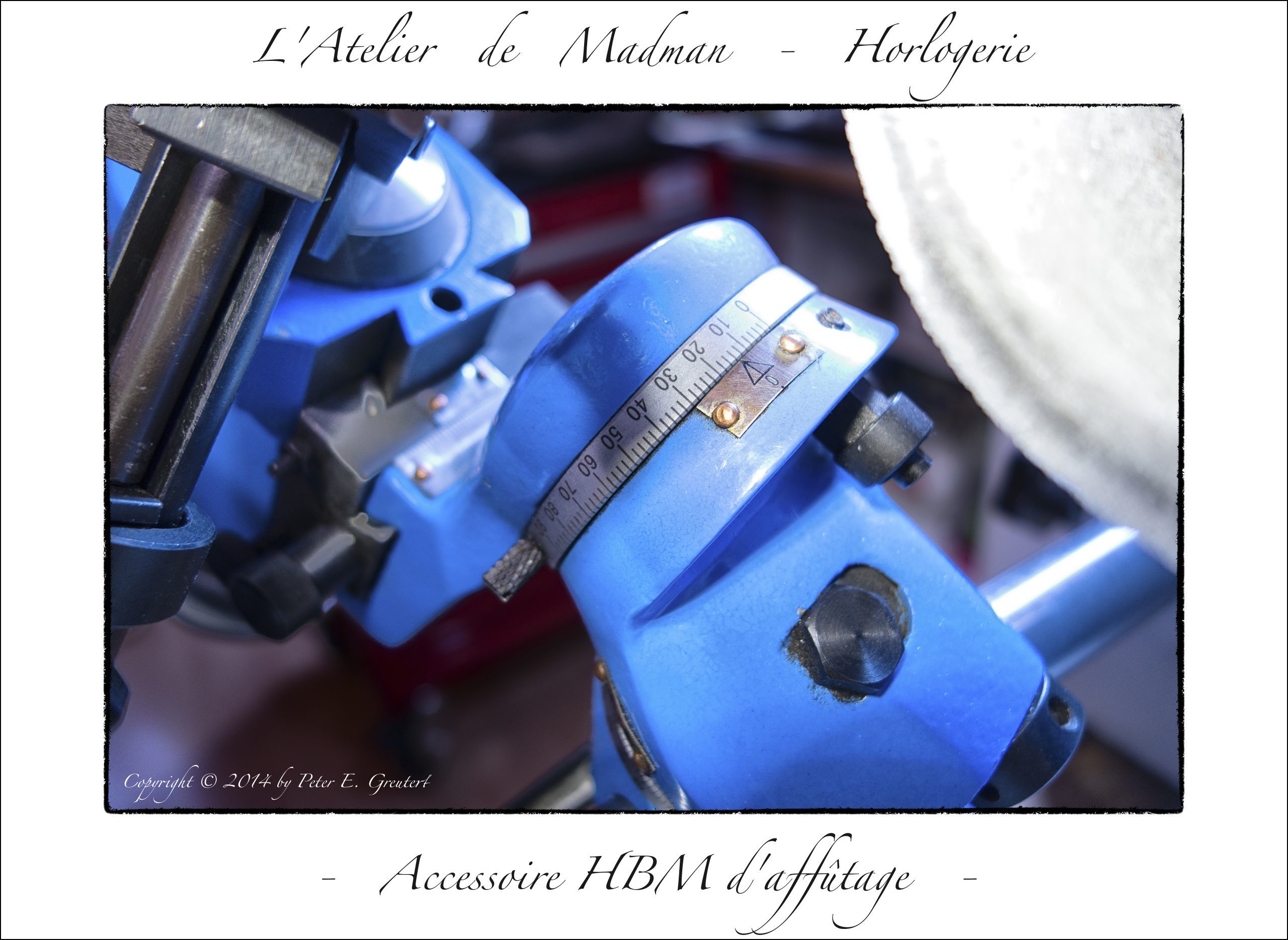 J’ai utilisé un accessoire fourni avec mon affûteuse HBM. Son utilisation n’est pas évidente, mais je crois avoir compris…