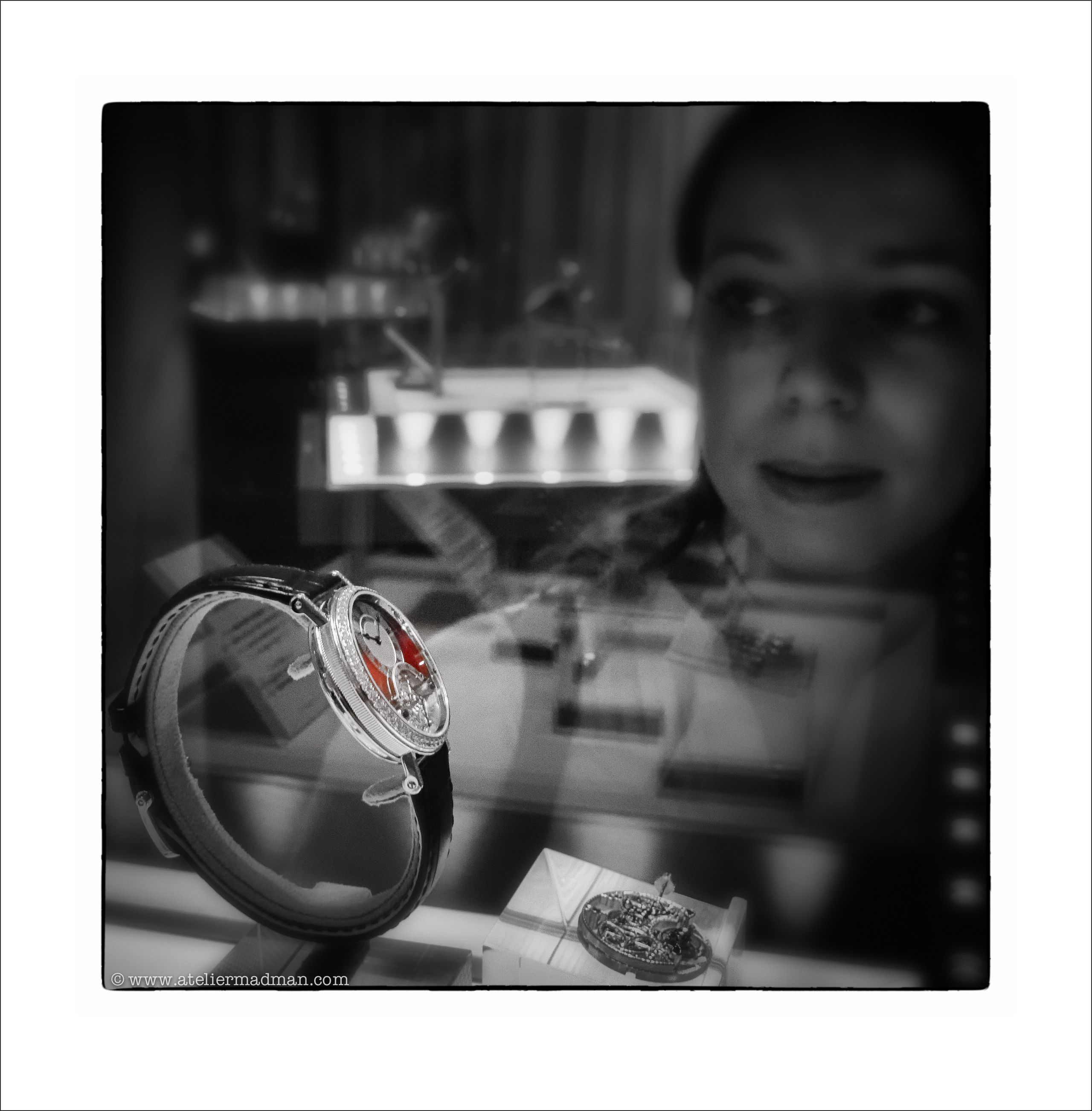 En effet, une « petite » exposition, se contentant de présenter un choix de montres contemporaines, beaucoup de diamants, pas de technique et peu d’histoire. Un prétexte pour inviter quelques « gros légumes » à un cocktail médiatique en marge du SSIH. Ajoutez un éclairage de misère pour le photographe…