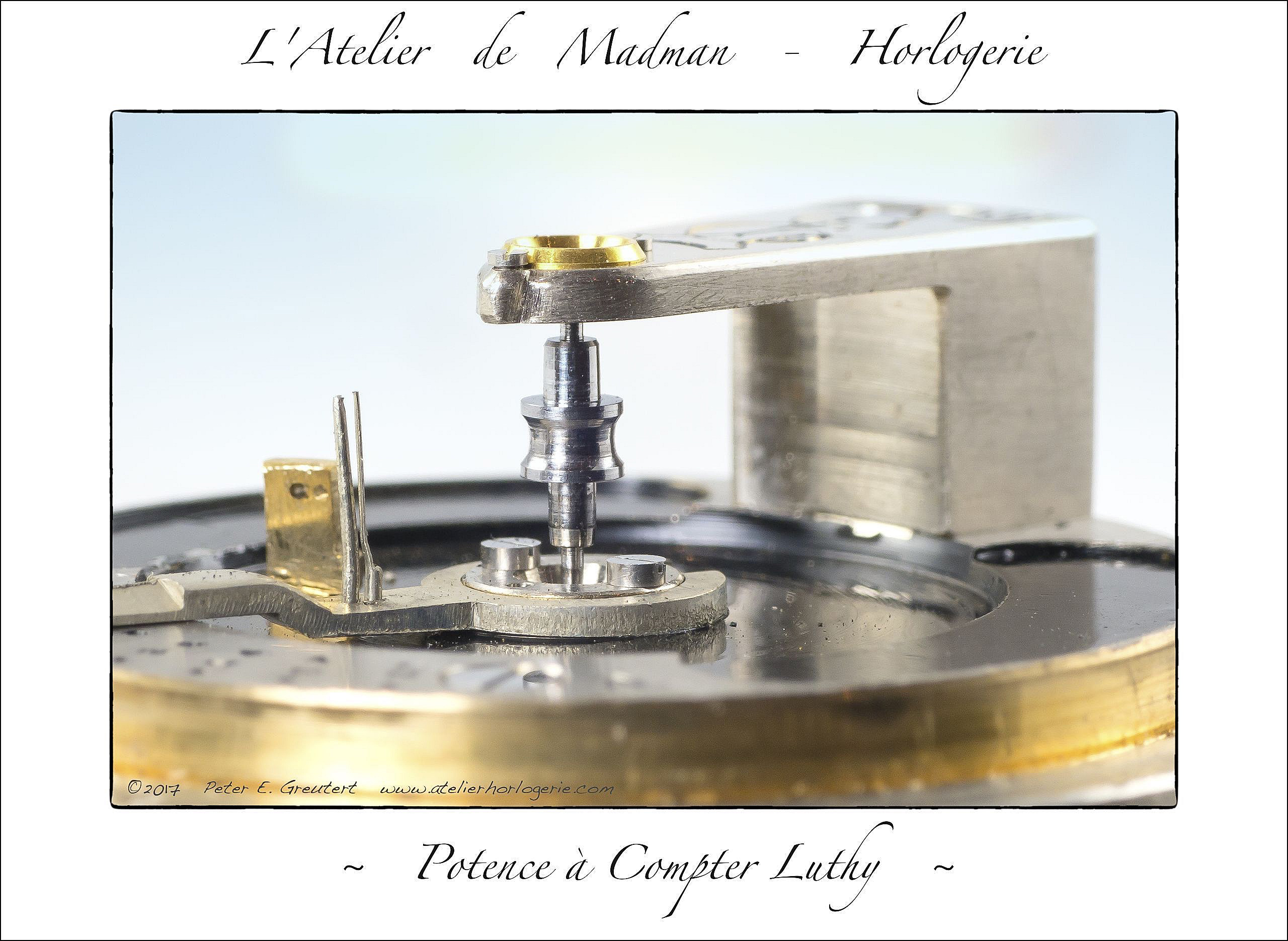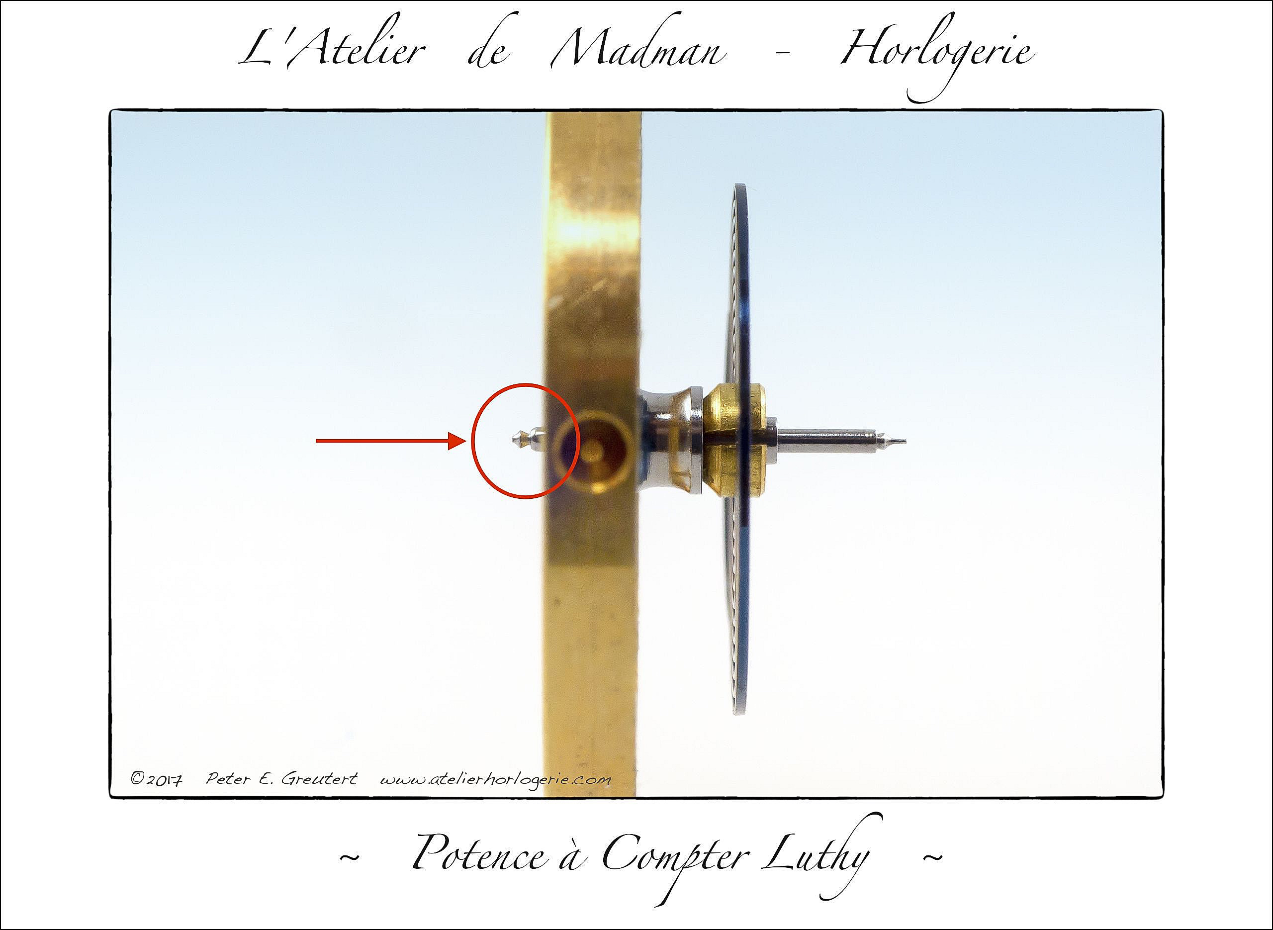 La réparation de cette potence a requis le tournage d’un nouvel axe de balancier. L’ancien s’est brisé lors de l’envoi postal de l’instrument à son acheteur. Un choc et le lourd balancier (plus de 2 grammes) a brisé net un pivot, d’un diamètre de 11 centièmes de millimètre seulement.