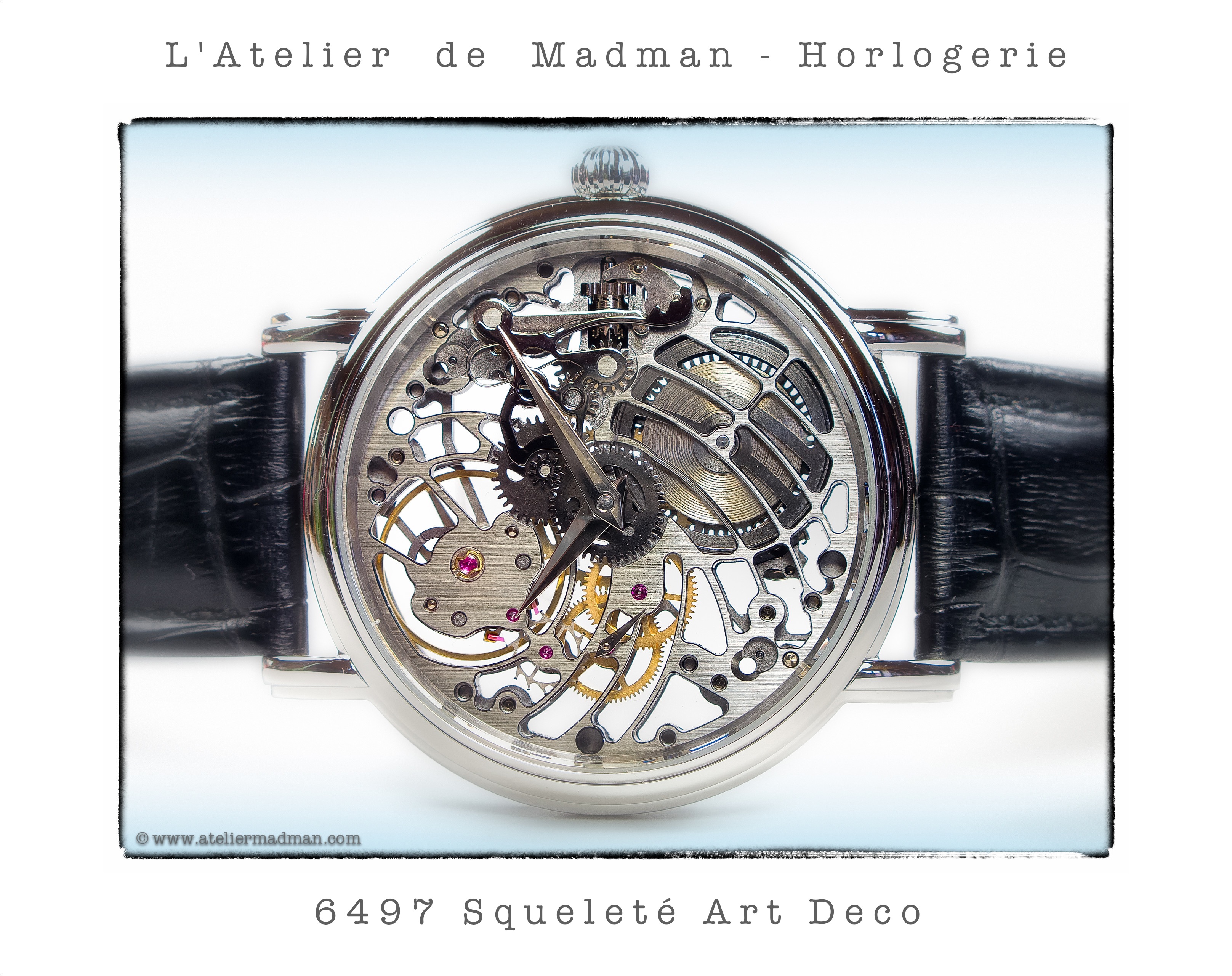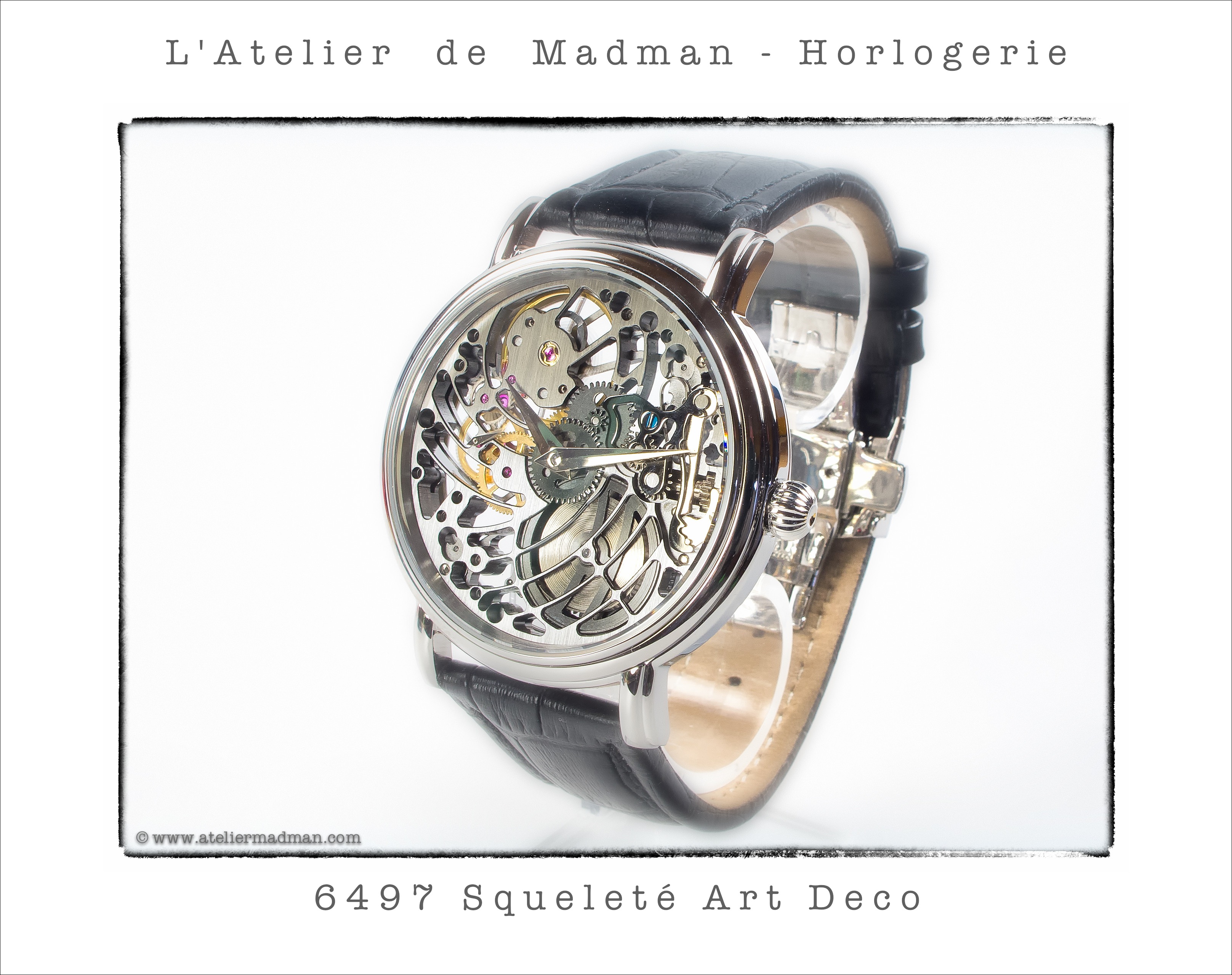 Birth of my exclusive Art Deco wristwatch, featuring a 6497 manual winding, black skeleton movement.