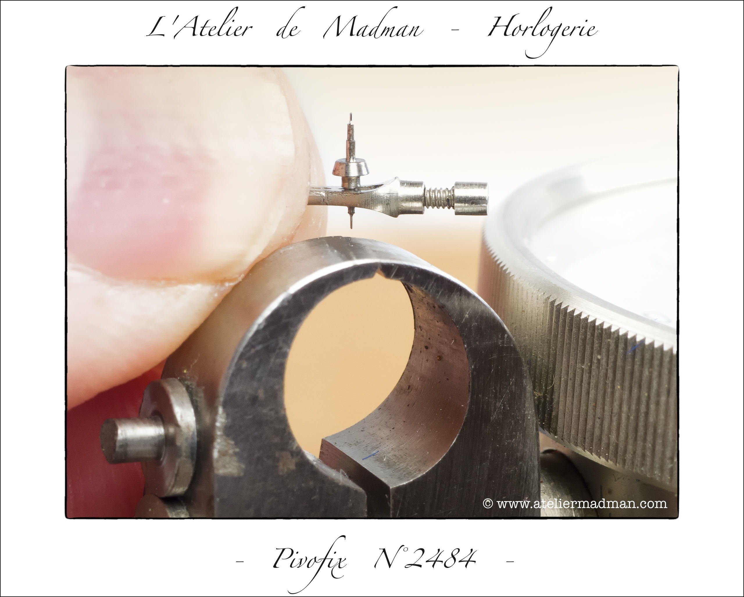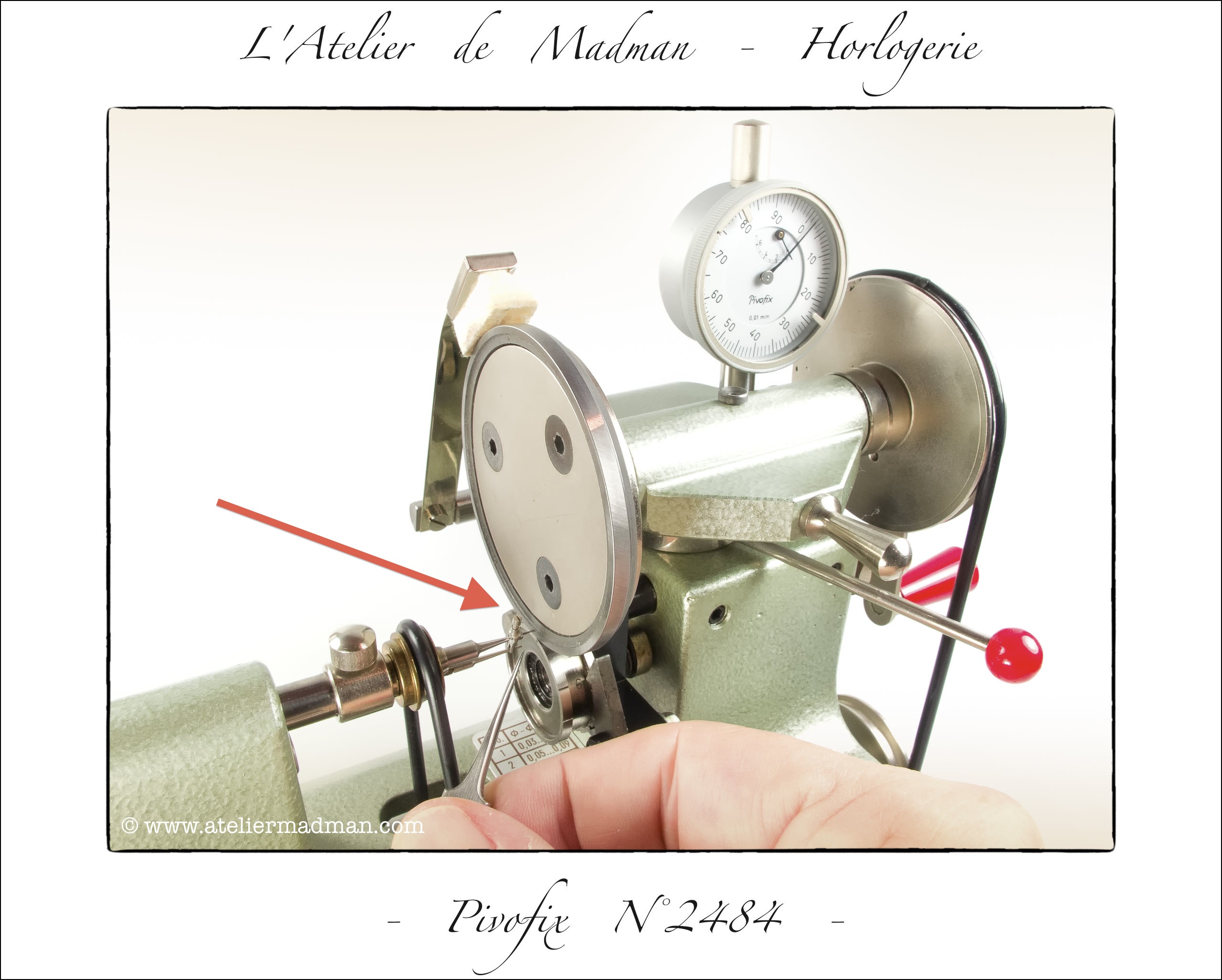 Arrivée d’une machine aussi belle que rare, qui ne se fabrique plus. La Pivofix permet de « rouler » les pivots d’axes avec rapidité et précision.