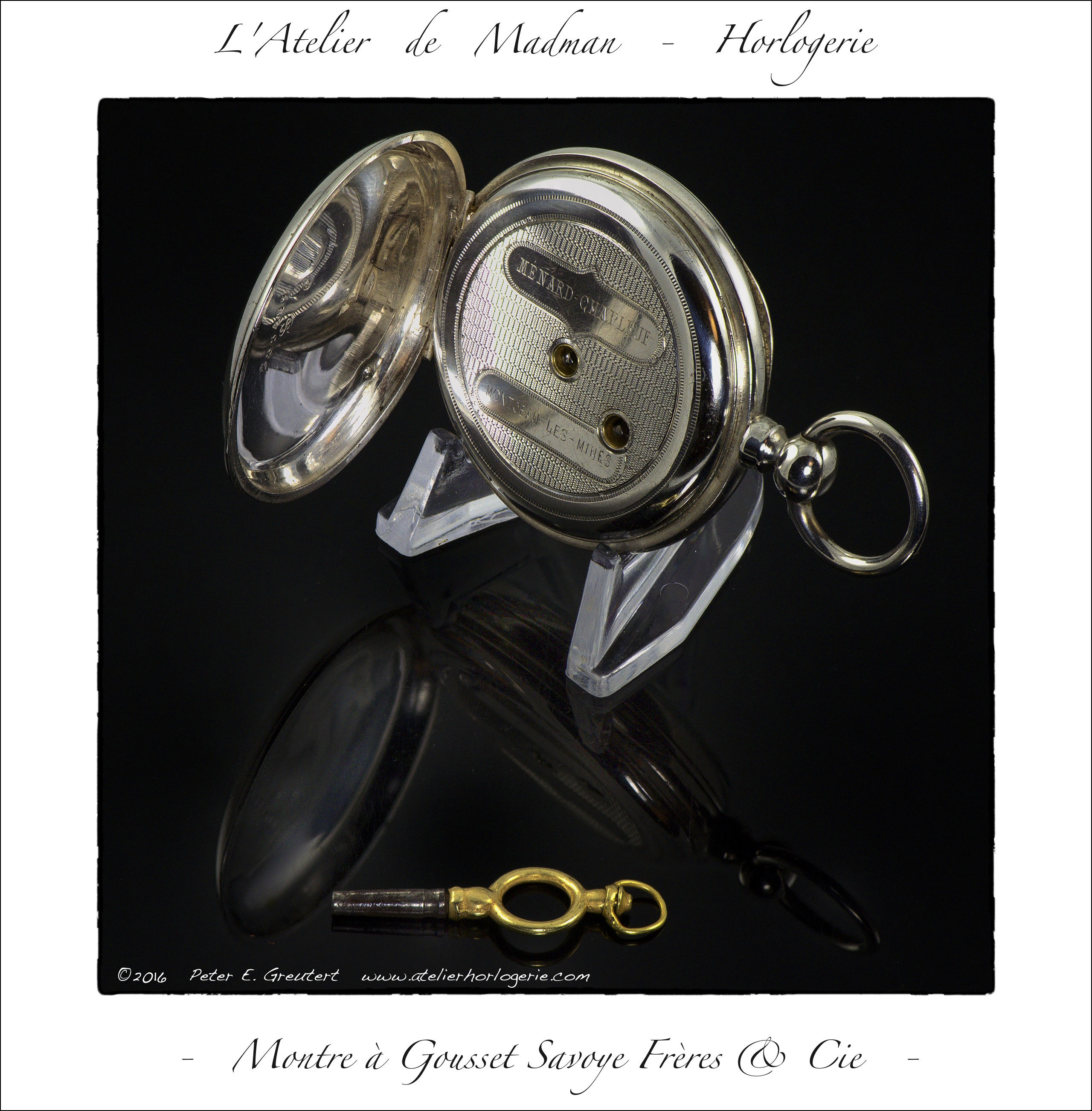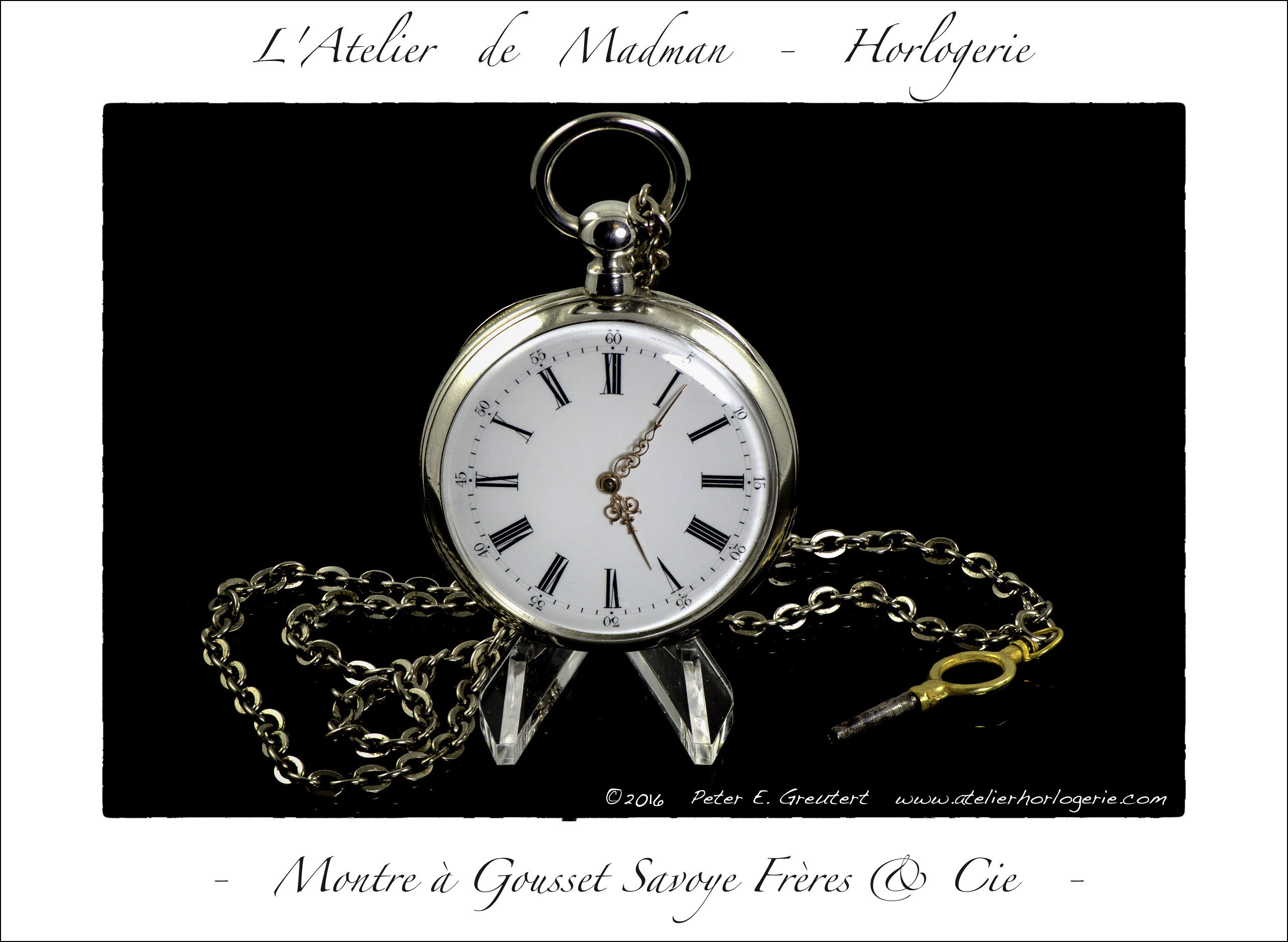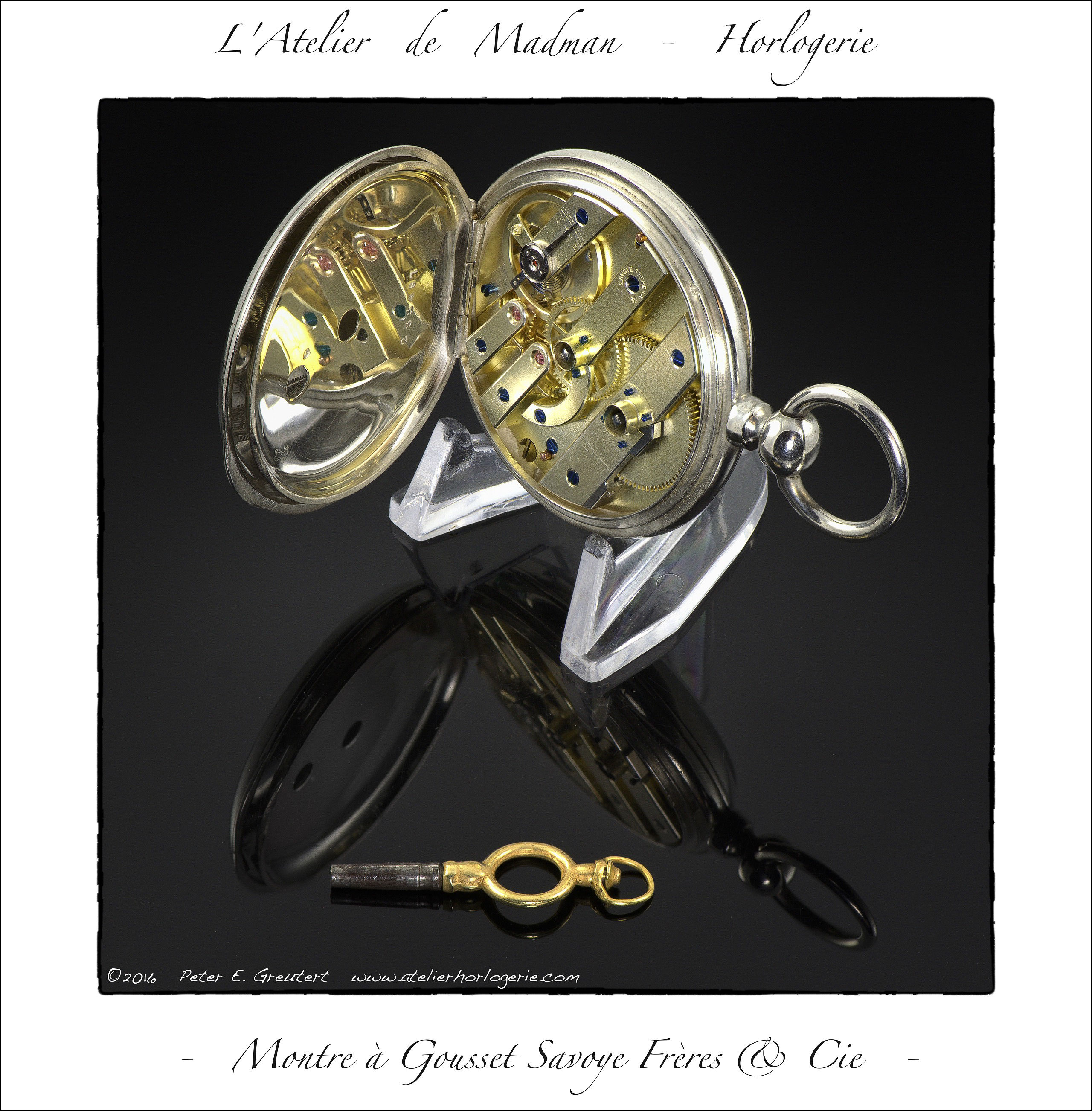 Elle vient juste de sortir de l’Atelier : une montre de gousset datée d’environ 1920, mouvement 18″ signé Savoye Frères & Cie, échappement à cylindre.