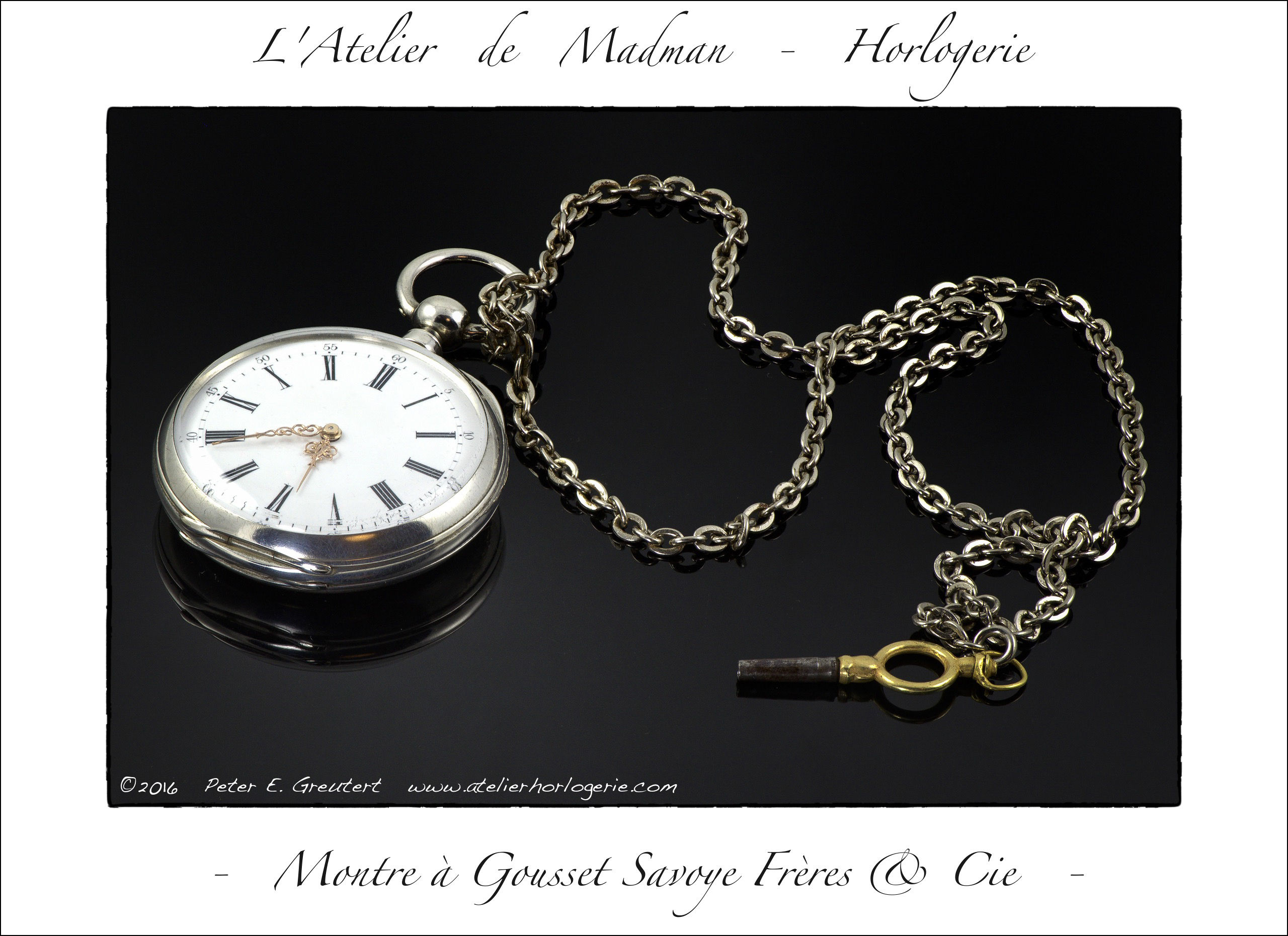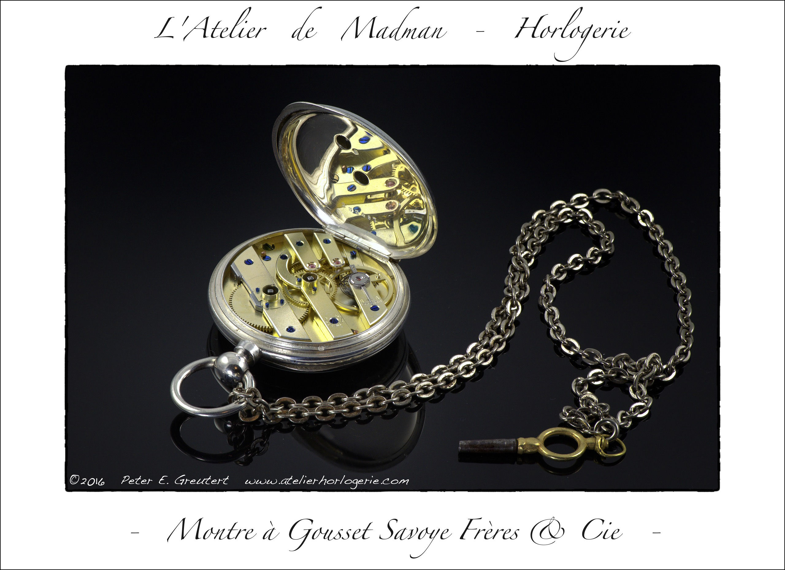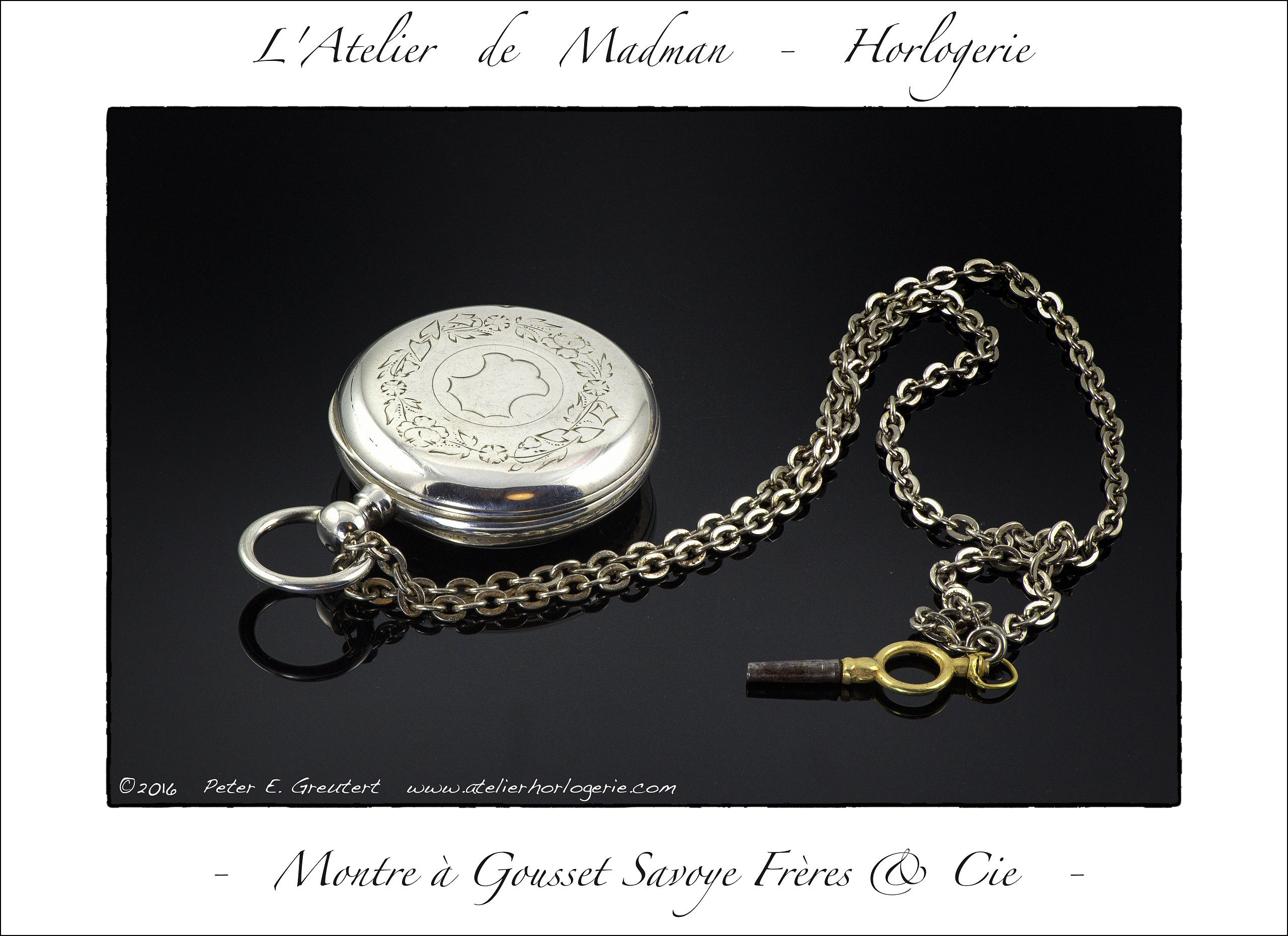 Elle vient juste de sortir de l’Atelier : une montre de gousset datée d’environ 1920, mouvement 18″ signé Savoye Frères & Cie, échappement à cylindre.