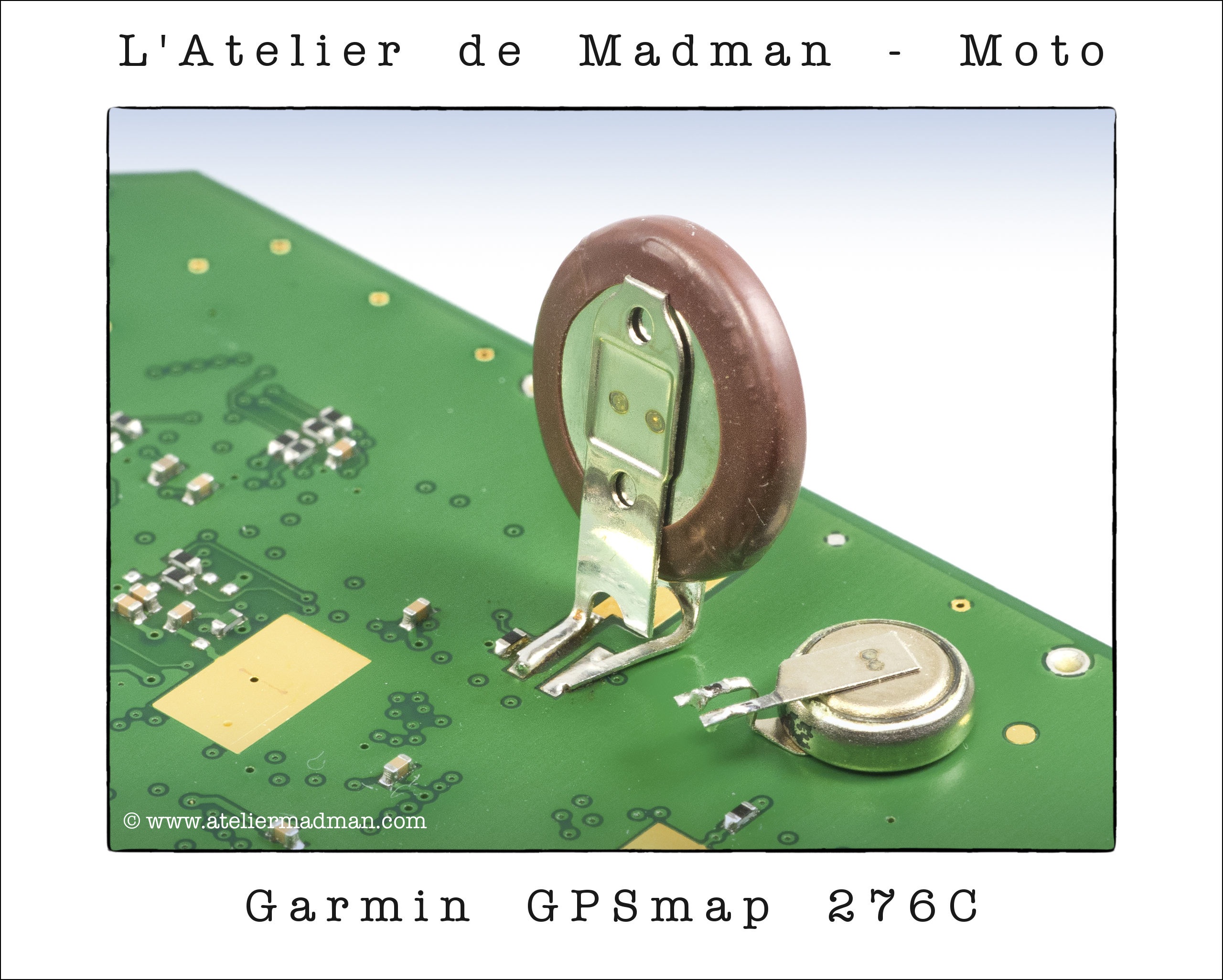 Réparation de la batterie interne du GPS, qui mémorise la position et la date quand l’appareil est éteint.