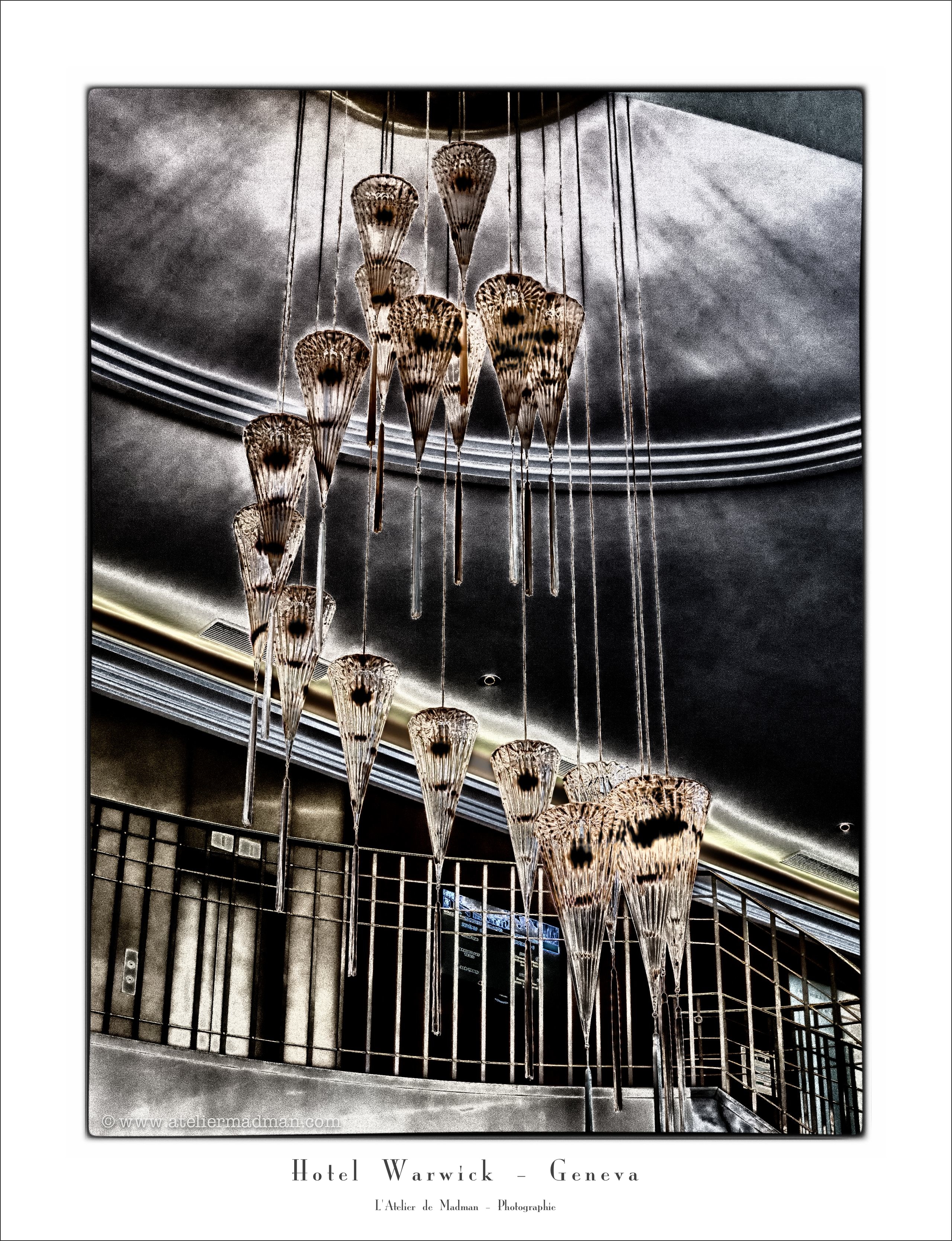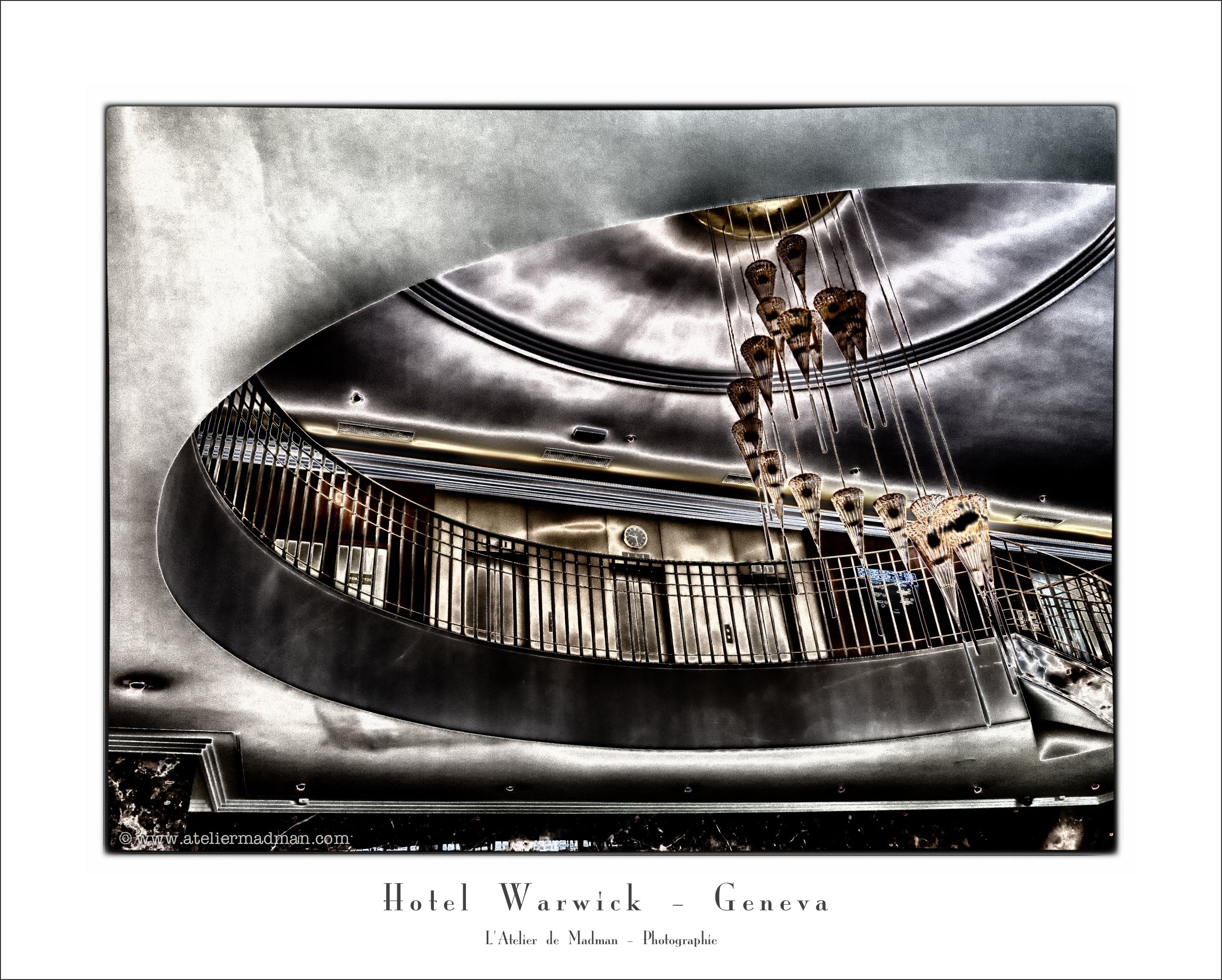 A dark vision of the lobby at the Hotel Warwick, Geneva.
